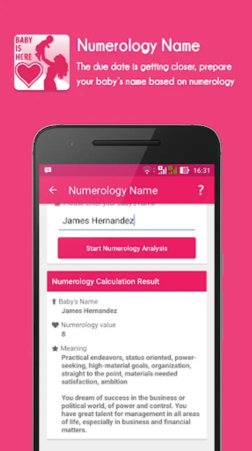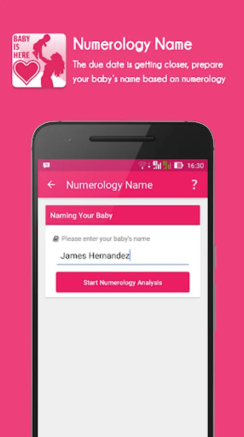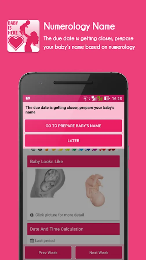 Pregnancy Calculator will give you many information about your pregnancy. And for you mom, if your pregnancy due date is getting closer, you can use this application too for preparing your baby's name based on numerology. You can check your baby name with one of feature in this application, Numerology Name.