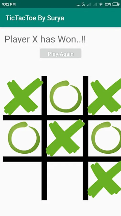 Two players will be there as opponents placing dots alternately.Whose dots matched vertical , Horizontal , diagonal the he will be announced as winner..!!