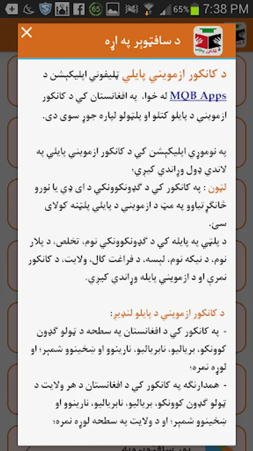 د کانکور ازمويني د پایلو ټلیفوني اپلیکېشن، په افغانستان کي د کانکور ازمویني د پایلو کتلو او پلټولو لپاره جوړ سوی دی.