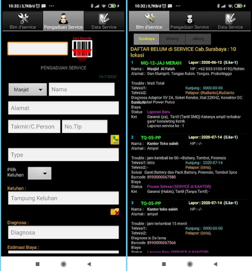 Includes reports on the status of the product service handler, new reports entered, service in handling, or finished service