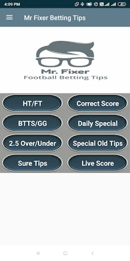 Mr Fixer Football Betting Tips daily free Football/soccer Betting tips and predictions app offer best combination of possible 2 odds daily like Over/Under Goals, BTTS - Both team to score, Halftime/Fulltime and 1X2- WIN DRAW WIN with Live score button.