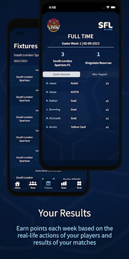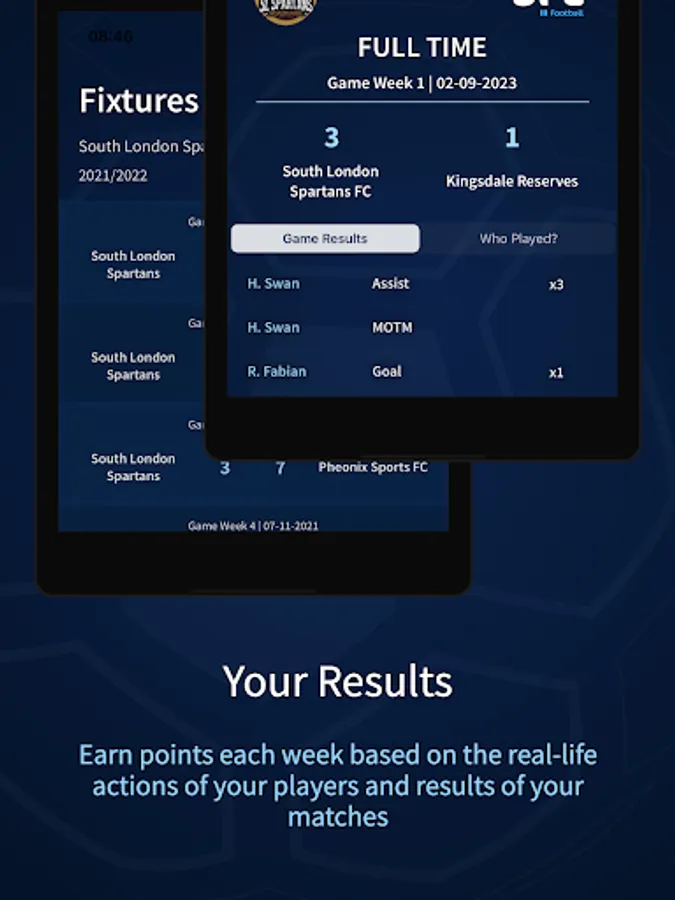 The SFL fantasy soccer app is a great way to bring your team together and encourage players and supporters to become more engaged with your clubs results. Not only that, it enables you to easily keep track of your team and player stats throughout the season and adds an extra bit of motivation on matchday.
