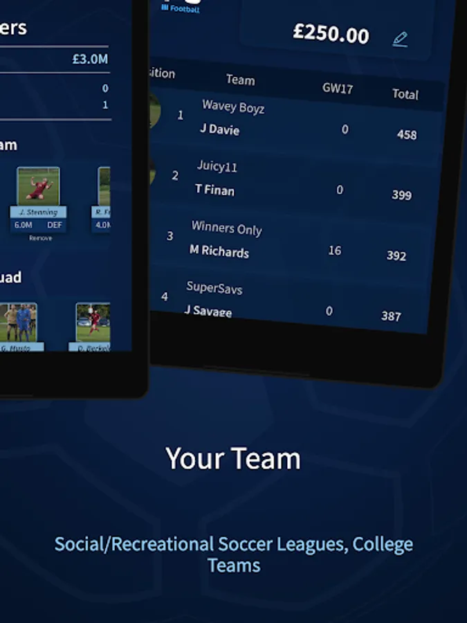 Star in your own fantasy team and compete privately with your friends and team mates, all based off the real-life actions of your players and results of your matches each game week.