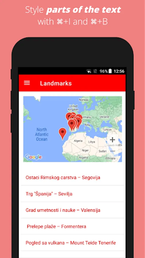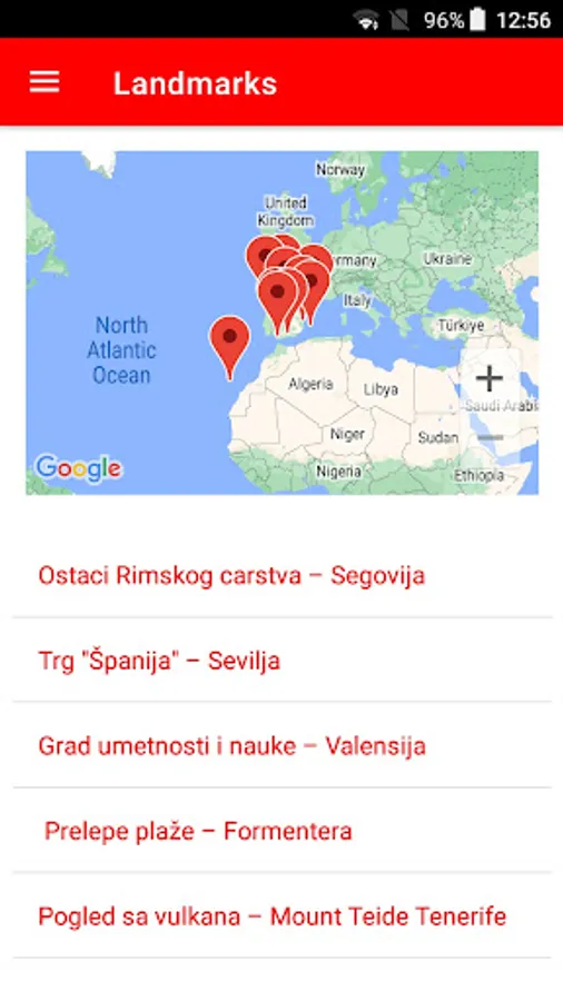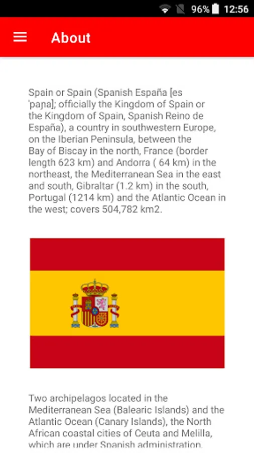 An application that represents a geographic handbook for arbitrary the state. Users can view cities, their history, map, video presentation. The most popular attractions in Spain, which I can add to favorites, news, and adjust the application settings.