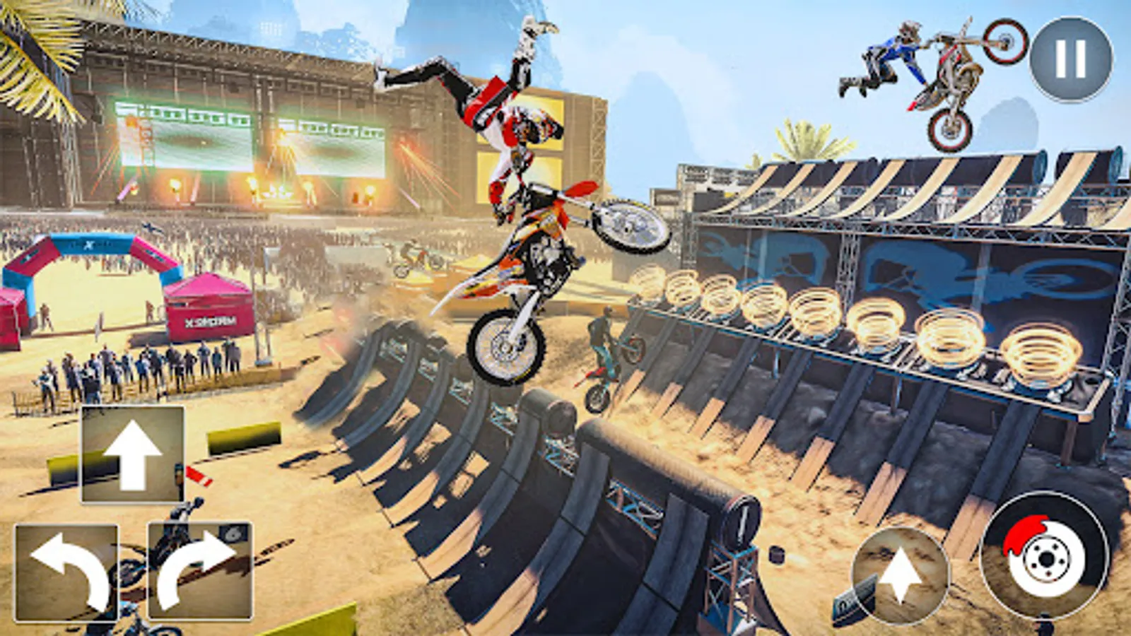 The thrilling and adventuring levels of simulate bike game will give you a chance to show your bike stunt tricks master skills. The Multiplayer mode of a bike race is filled with highly polished stunt riders who are going to increase your motorbike stunts racing competition on the mega ramp. You can become the champion of bike stunt games by defeating your opponent players. The easy and smooth control of the stunt bike race game will make it easy for you to win the stunt race. Crazy bike riders and dangerous tracks will play the role of barriers and prevent you from winning the bike race. As a bike stunt trick master, it is your responsibility to demolish these barriers and keep on moving towards your final goals. Perform your best to win the stunt race of bike stunt 3D game.