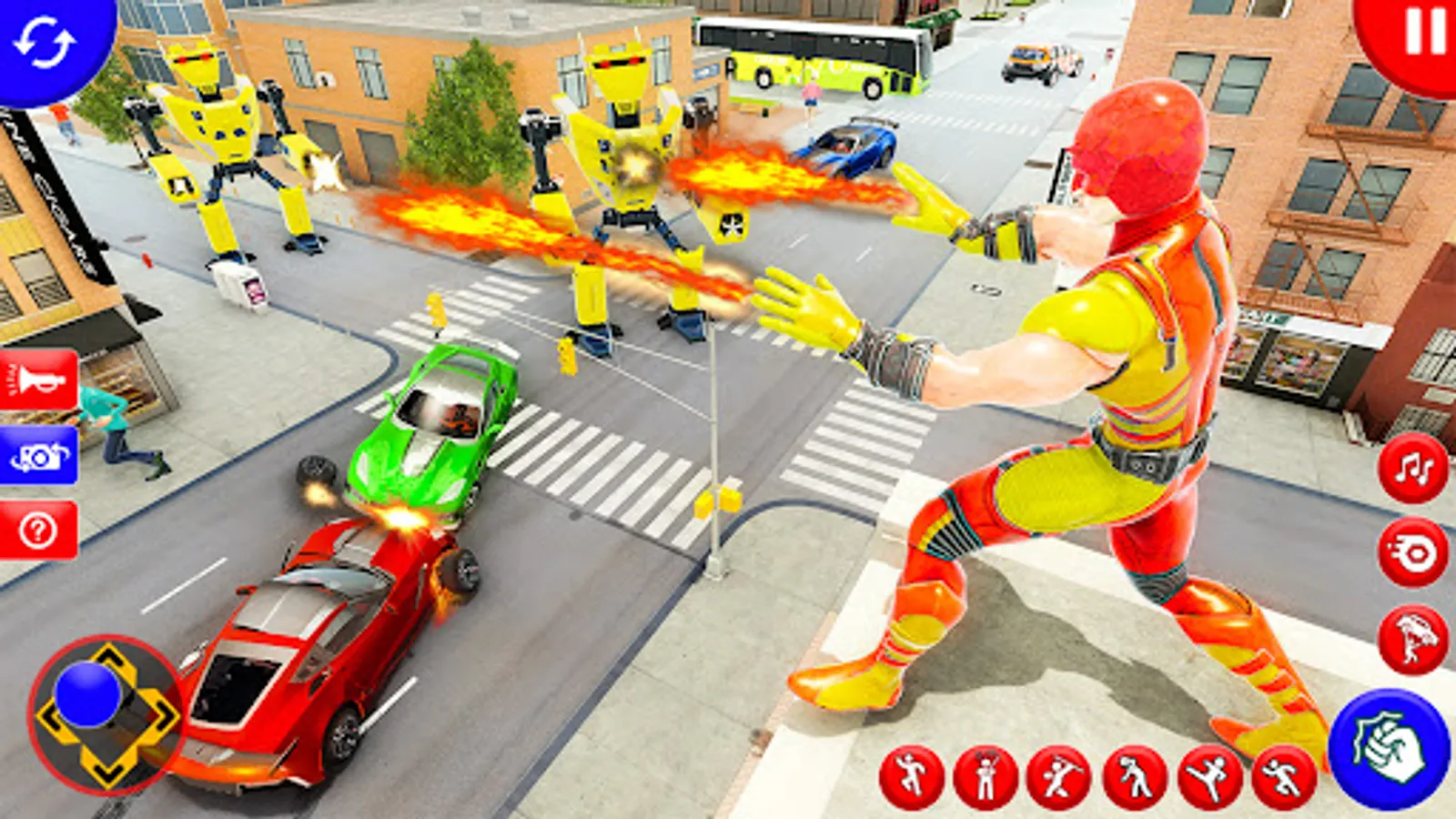 Enjoy the grand fighting between your favourite flying fire hero and gangster in the top games of fighting and firing. City battle game is containing different robot rescue missions for the fire robot hero to protect the city from being destroying.