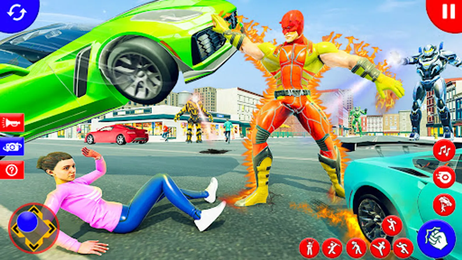 Superhero rescue games will show you how the fire hero fight with the criminals in the streets of the gangster crime city to complete the robot rescue mission. Drive the robot hero car to find the robbers hiding in the flying superhero game offline.