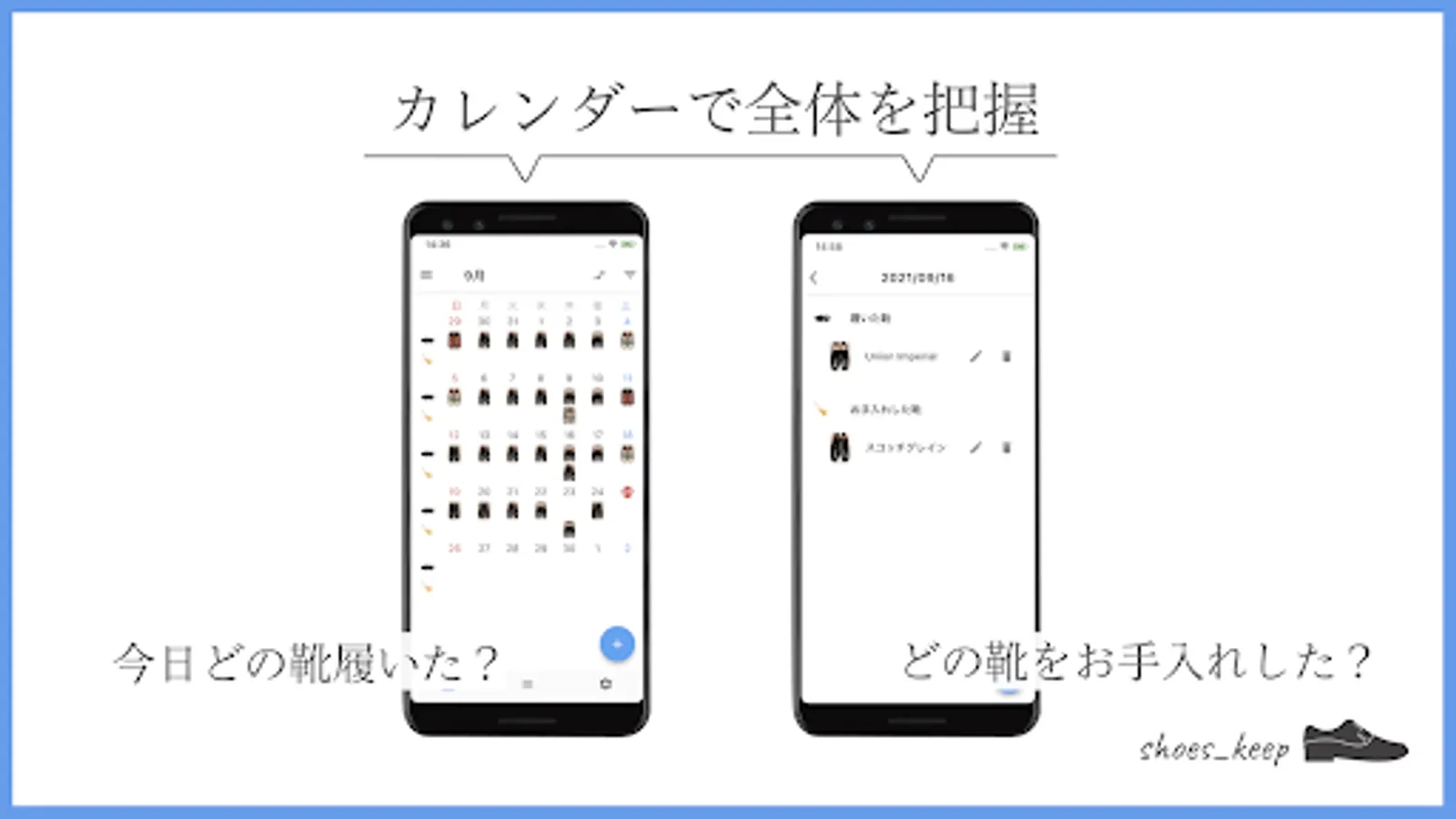・ Display on the calendar when and which shoes you wore and which shoes you took care of