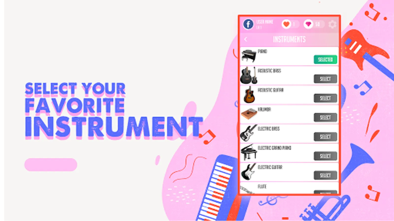 - Feel the instruments you love: piano, guitar, violin, drums, harp, and others