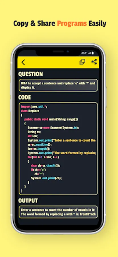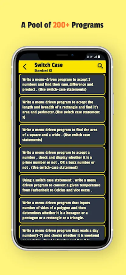 The app has more than 200+ solved Java Programs for classes 8 to 10. It has all the important questions covered from each of the topics as per the council's syllabus. There are separate sections for all the three classes along with a combined section under which you will find all the subtopics altogether.