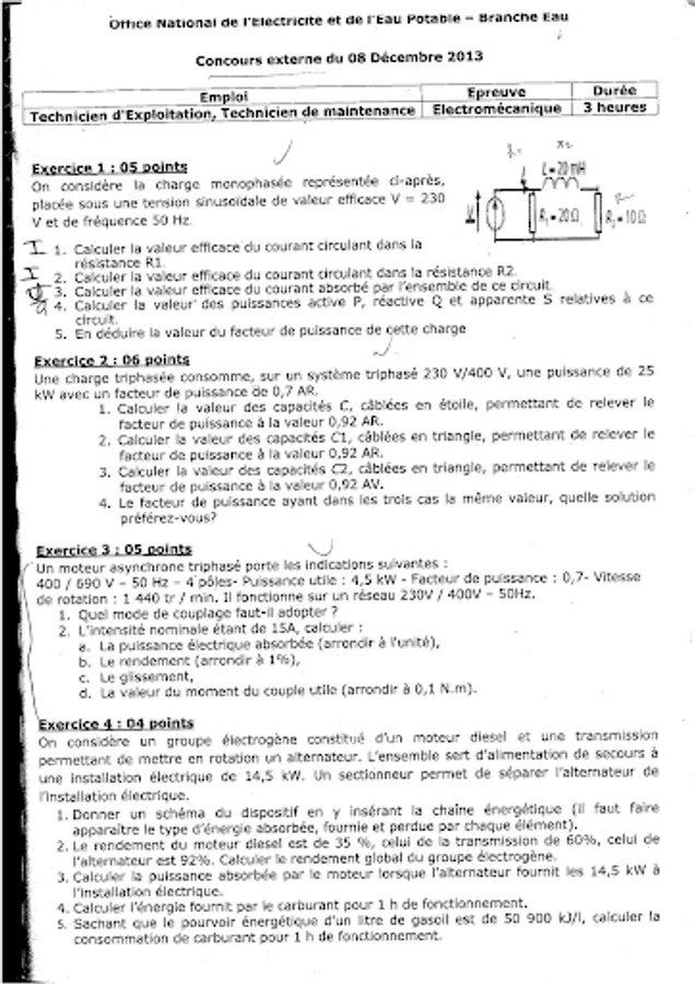 Summary of coures electricity oldest quiz contest ONEE (technician, technician)