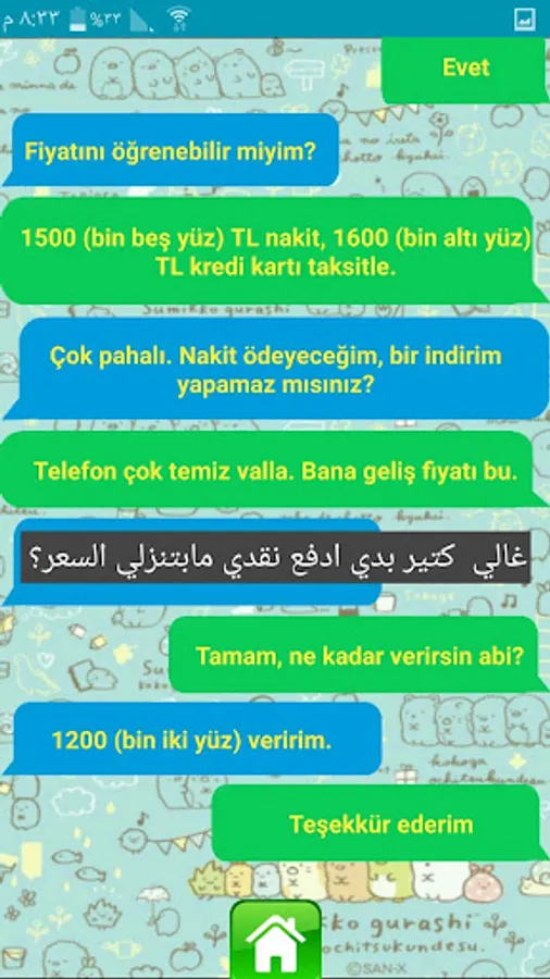 Turkish conversations translated to Arabic when you click on the conversation