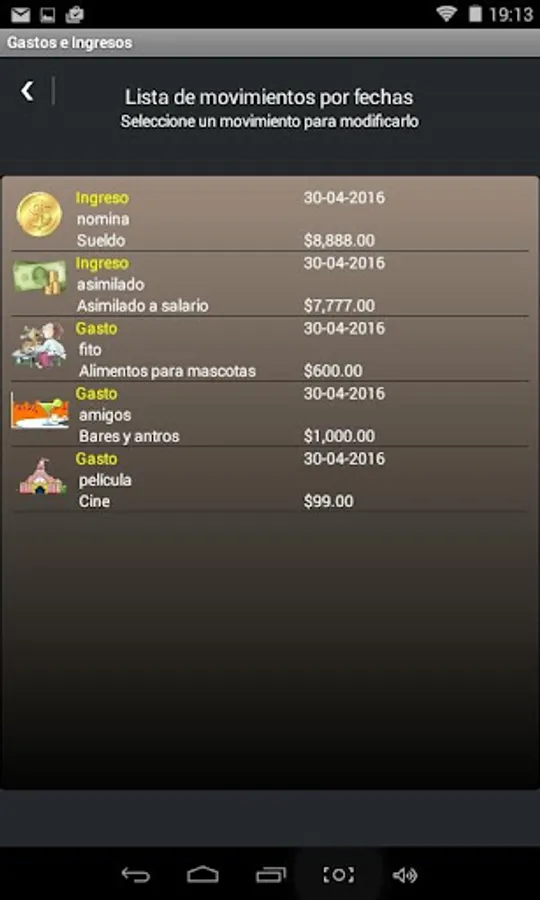 Income: Add your income by date, classifying, placing amounts and from the reports menu and movements can be updated.
