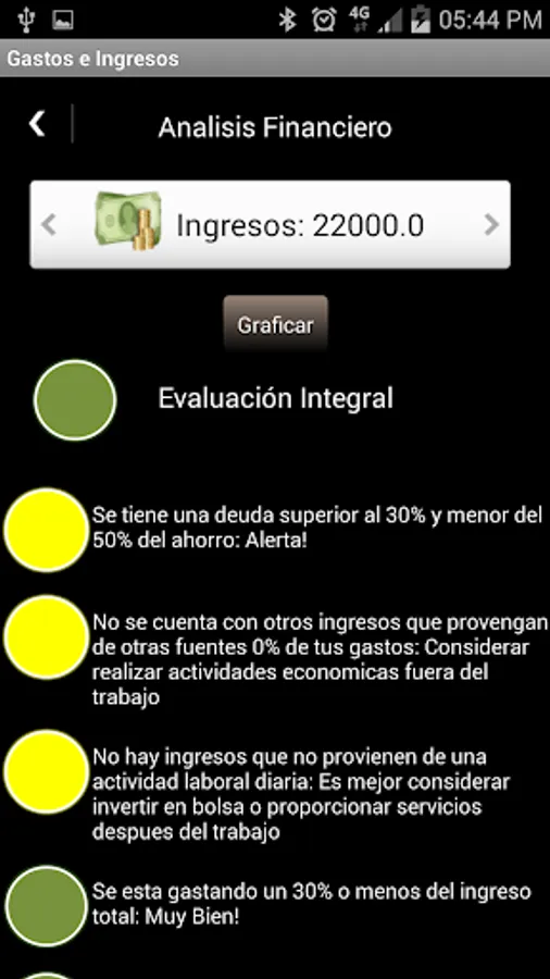 Financial Analysis: Financial analysis is a thermometer that tells you how to go with your personal finances, giving a detailed analysis, giving recommendations and telling you how they move your expenses, your income, your debts and your savings because at the end it shows a graphic standing of each item.