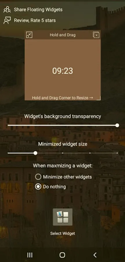 Select your favorite widgets to be floating on top of any application, with a minimize feature that turns your floating widget into a floating icon.
