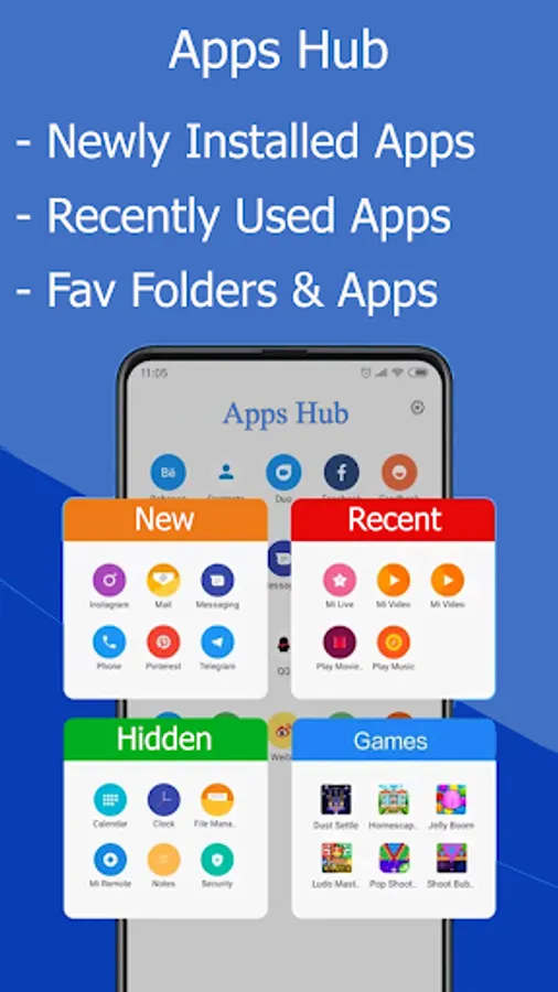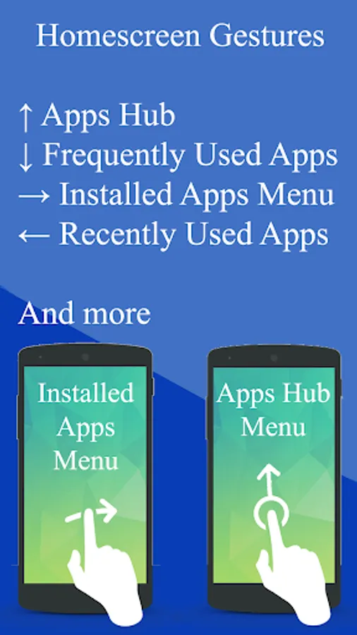 - Open Apps Hub, Hidden apps , Recently Used & Installed apps via gestures.