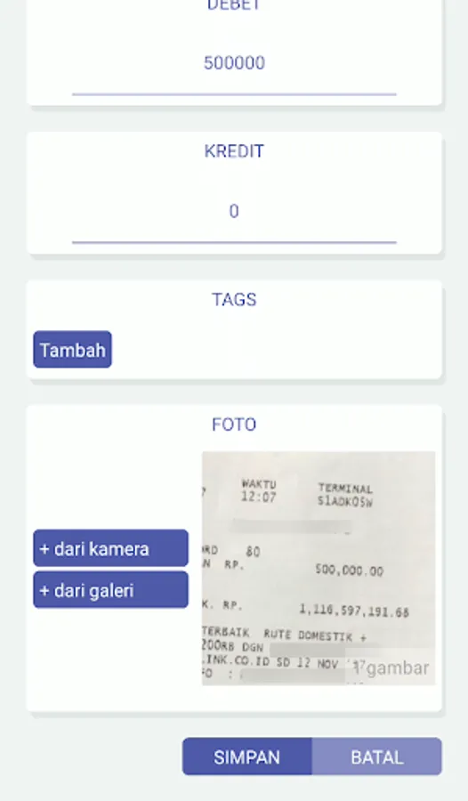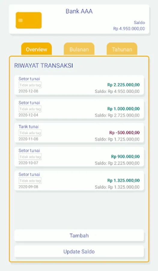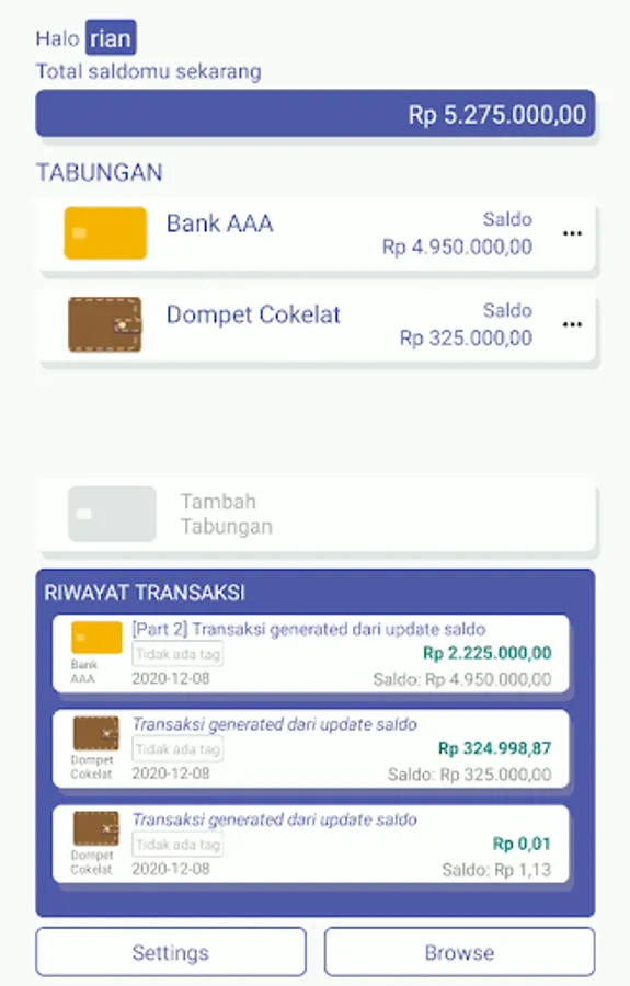 Aplikasi catatan berbagai macam tabungan