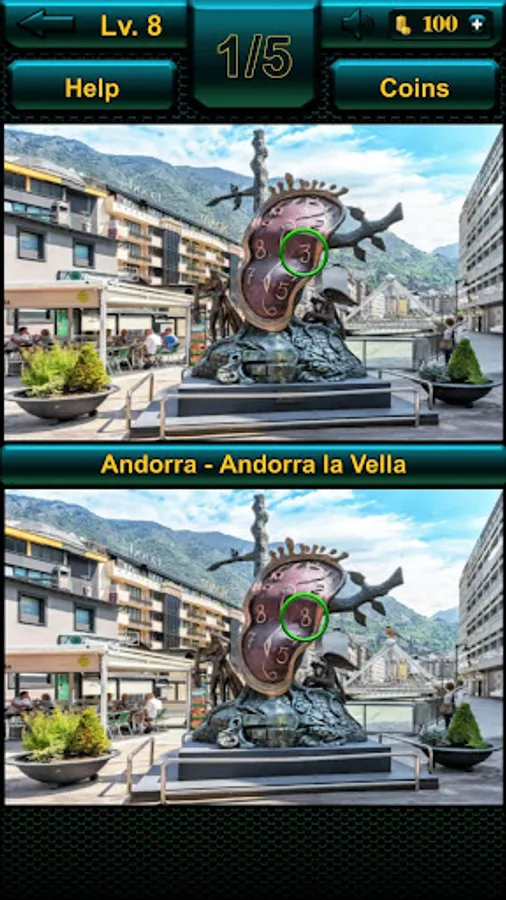 A game that improves logic and thinking. Find 5 differences between the two drawings and find out all the capitals and flags of the world. For every correct answer, you get 5 gold coins, which you can use later to get tips.