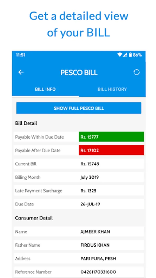 With Bill Checker you can search for electricity bill, gas bill, water bill, telephone bill and other duplicate electricity bill without having the need to enter the reference number every-time.