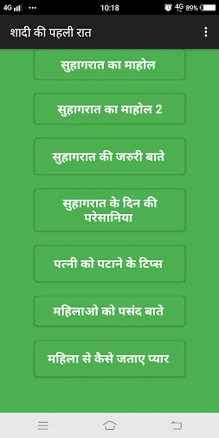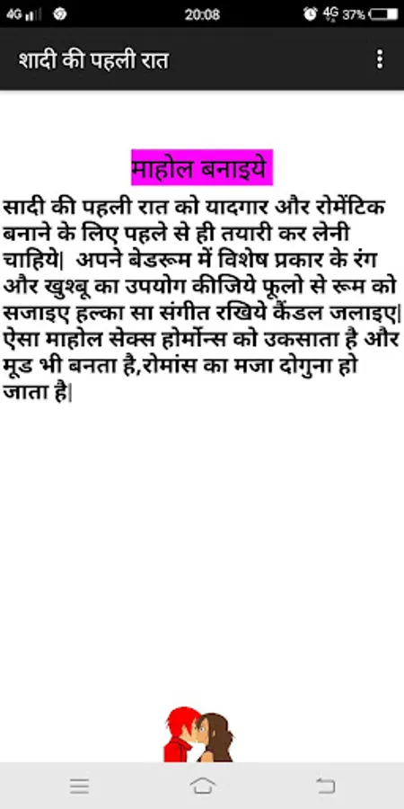 ISS APP KE JARIYE JO LOG NAI NAI SHADI KARTE HAI LEKIN YE NAHI JANTE KI APNE PARTNER KO KAISE KHUSH RAKHA JAYE IS VISAY ME BATATI HAI. SHADI KI PAHLI RAAT KE BARE ME SAB JANKARI IS AAP ME DI GAI HAI