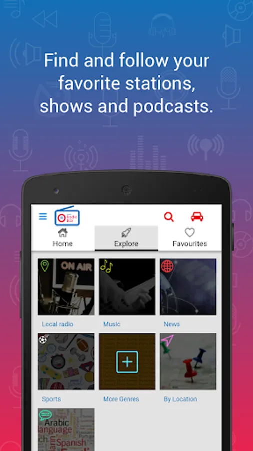 • Find and follow your favorite stations, shows and podcasts.