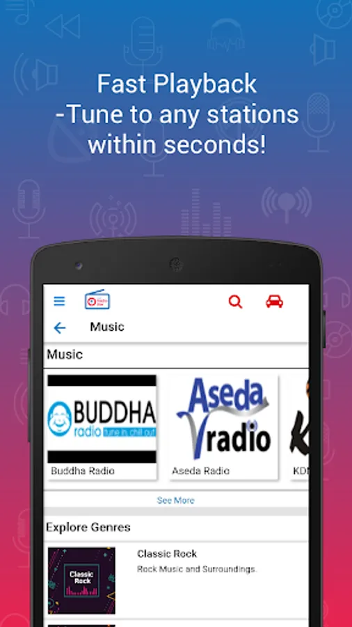 • Thousands of radio stations of different countries and genres are available in Online Radio app