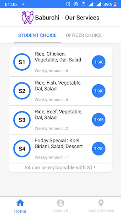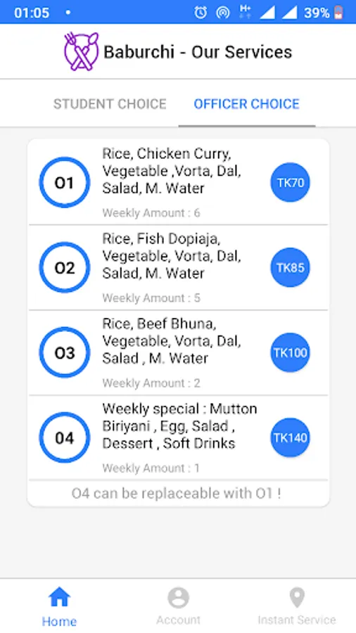 “Officers Choice” is for the employees which has regular pricing & lucrative dish.Customers can register,order,check history & make payment through the Baburchi app. Baburchi app is free for all and doesn’t concern any harmful objects.