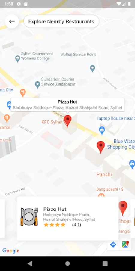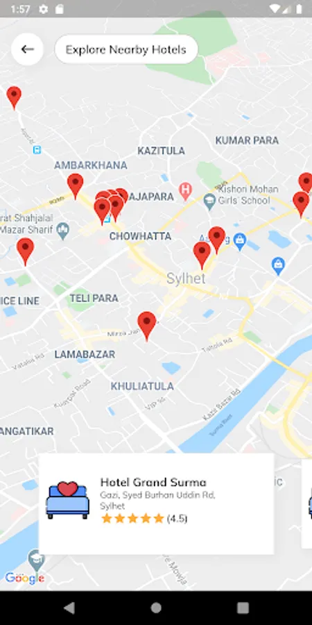 Nearby hotels and restaurants – We used Google Places API to show nearby hotels and restaurants on a map. We applied an interactive animation between Google Map and Listview.