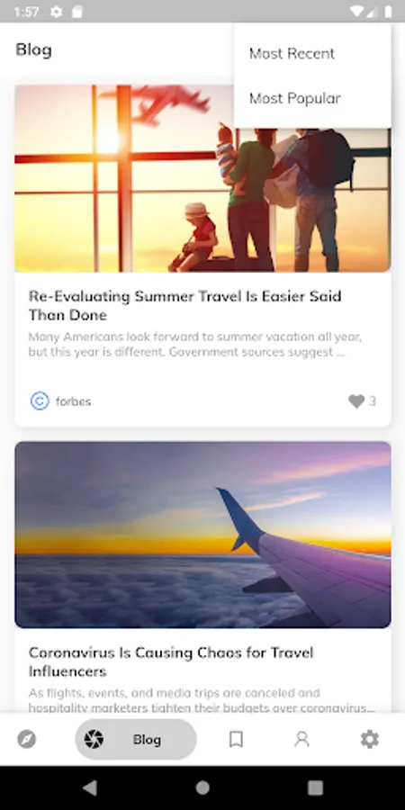 * Travel Blog – Like a News app. Blog description also supports HTML.