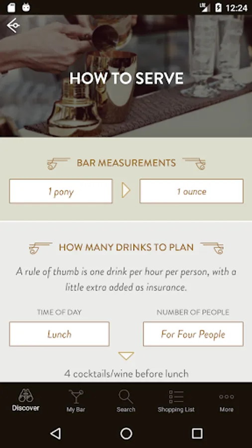 The app contains 10,539 cocktail recipes that can be searched by name or ingredient. If you just want to browse, use the "discovery" page that lets you view cocktails by style, era, occasion, city of origin, and many more ways! You can share to Facebook or Pinterest, or create your own Bar Book full of your favorite cocktails and lists. The app also has a wealth of information: techniques and glassware, a glossary of ingredients, and the history of the cocktail, just to list some of the highlights.