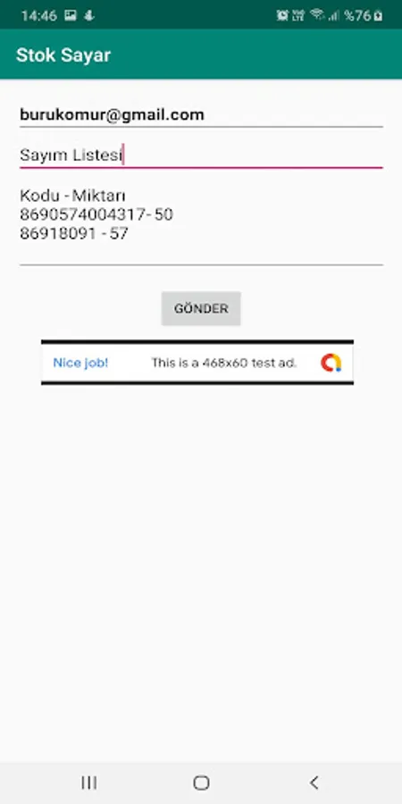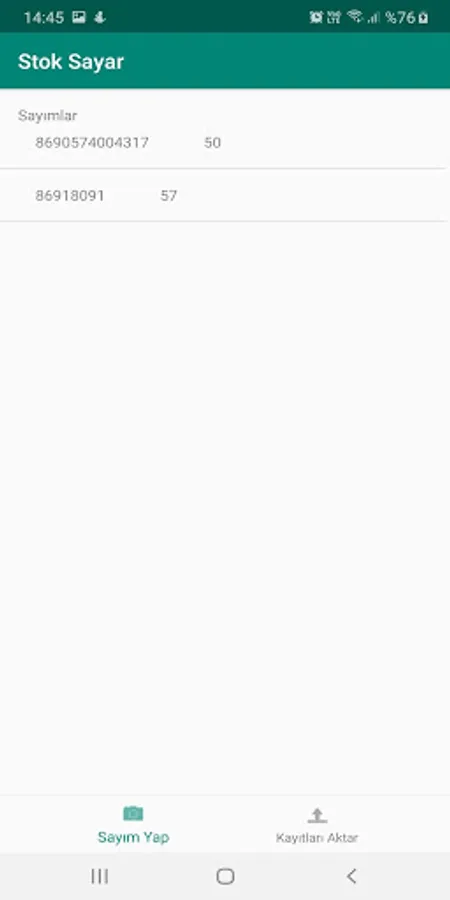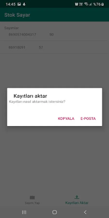 Material is counted using barcode or QRCode. The list of materials is counted. It can be sent as an e-mail.