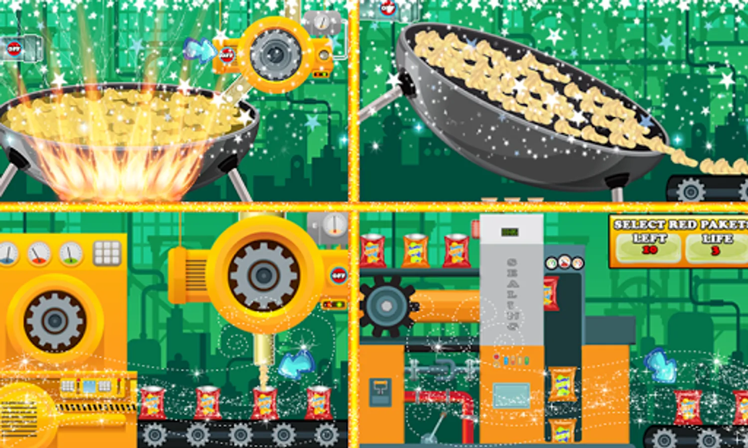 Making easy pesy potato chips with delicious masala and cook spicy French fries in your own house kitchen is really great fun. It’s most economical and easy but here you have to cook them in factory for making and packing bulk quantities in Tasty Potato Chips maker – Cooking game.