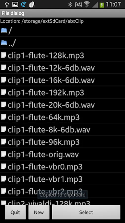 You can test any audio clips on your device, in any audio format your device supports. Most versions of Android support WAV, MP3, AAC, FLAC and others.