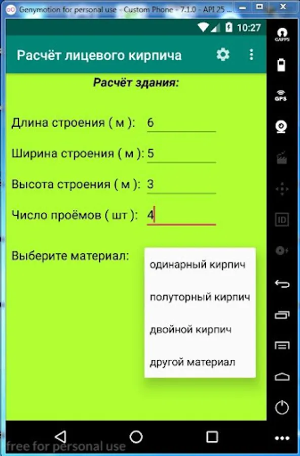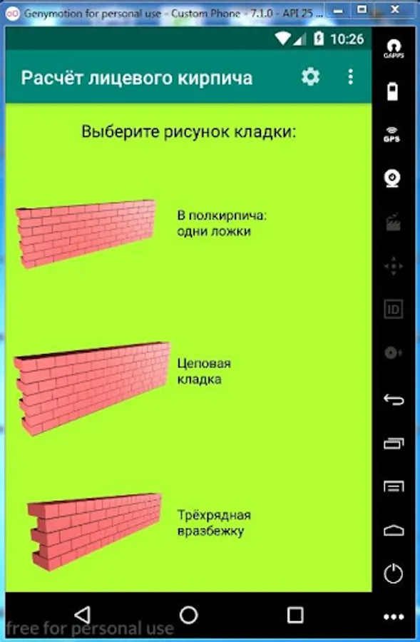 Do you want to build a house or a cottage with beautiful decorative finishes and don’t know how much face brick will be needed for this? Then this app is for you. The program will accurately calculate the number of face bricks for any masonry drawings, as well as the cement and sand necessary for cooking