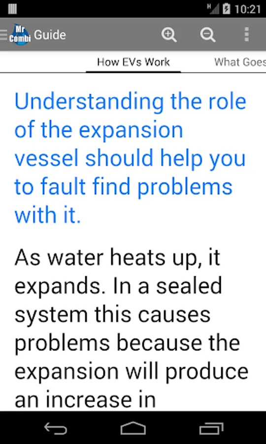 The app will show you the total water contents for the entire system and the vessel size required. If this size exceeds the vessel fitted to the boiler, an additional vessel will be required. Simple!