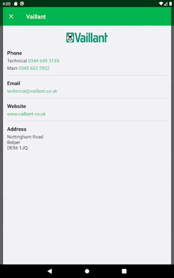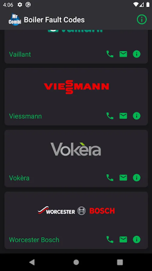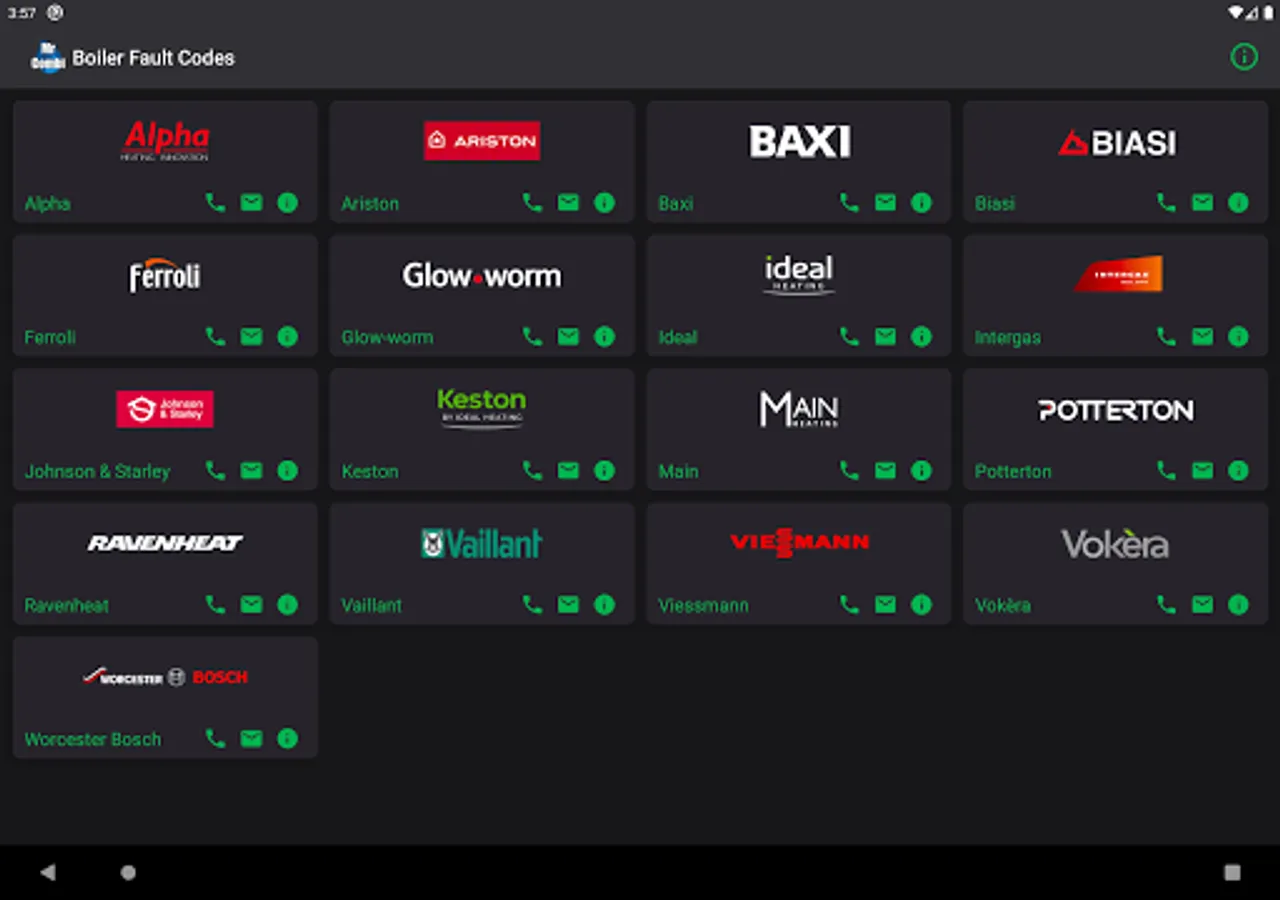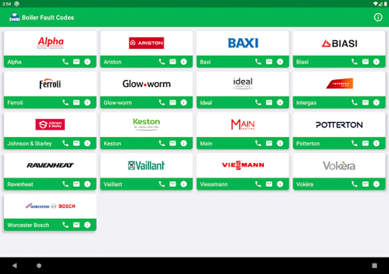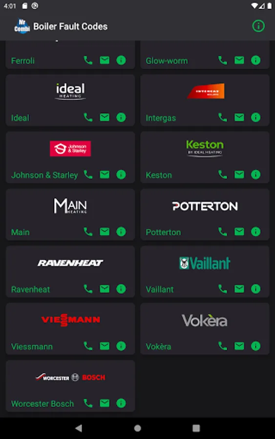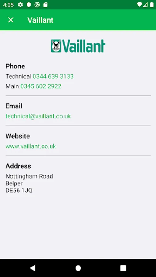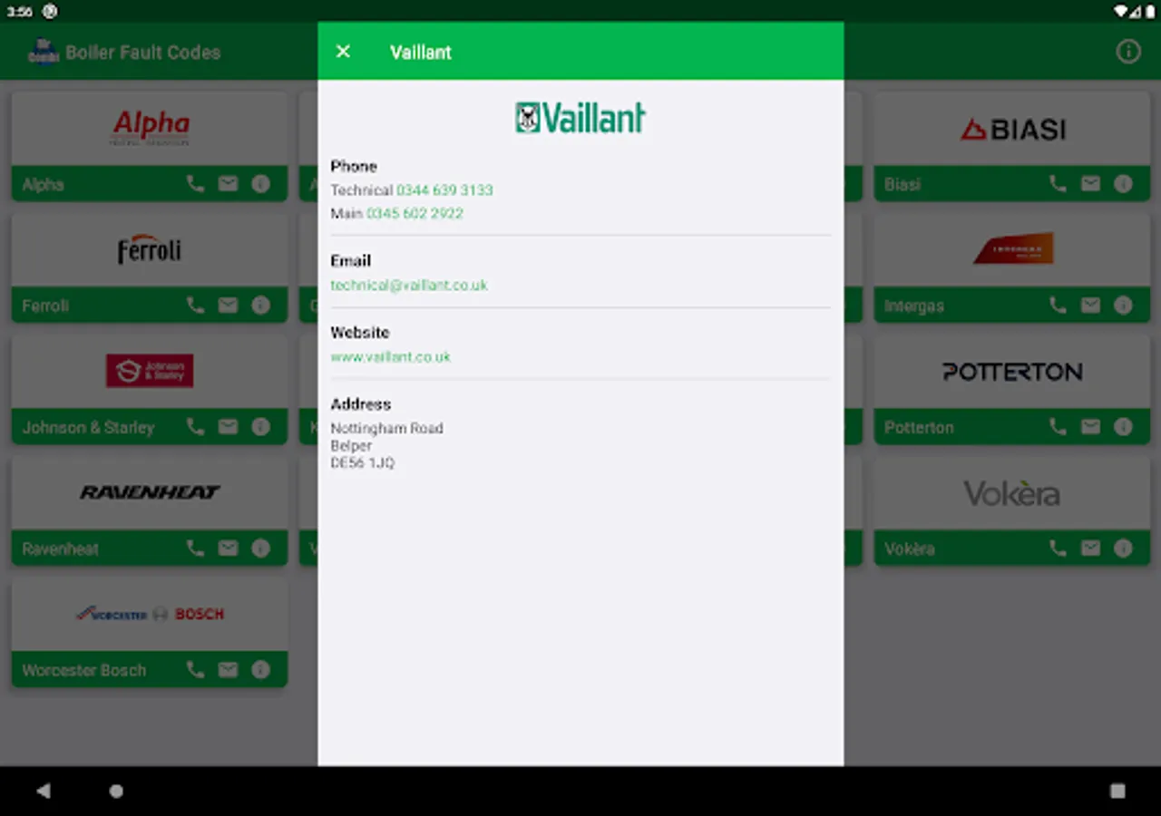 And there's even more, need to get in touch with a manufacturer about a fault? The app includes contact details for all 17 manufacturers, that includes phone numbers and email addresses.