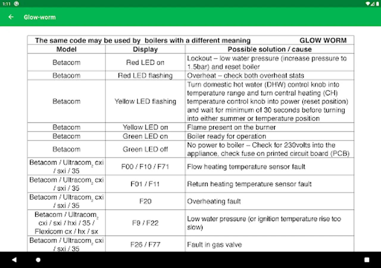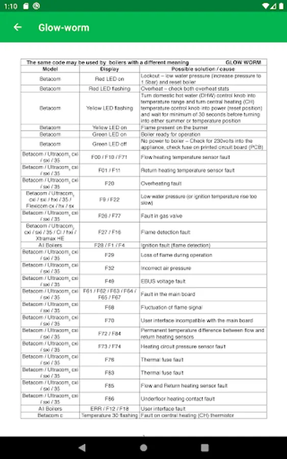 Do you ever get to a customer’s house, their boiler is showing a fault code and there’s no servicing manual in sight? With our app you won’t need to hunt for the manual, you can quickly find the cause of the error and get cracking with fixing the problem.
