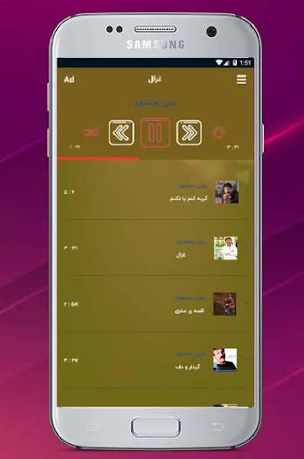 Free app for Android phones, Bijan Mortazavi songs without internet connection