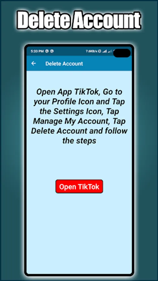 With Delete Account you can delete facebook or delete instagram or delete snapchat and much more .