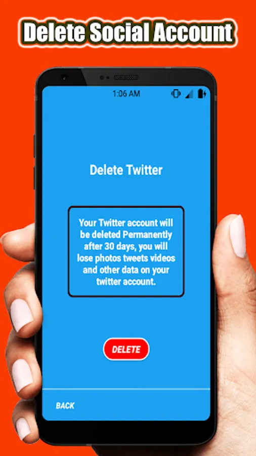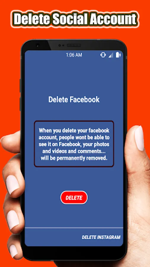 With Delete Social Account you can delete facebook or delete instagram or delete snapchat or delete twitter, If you want more social networks accounts Check out our previous application "Delete account" .