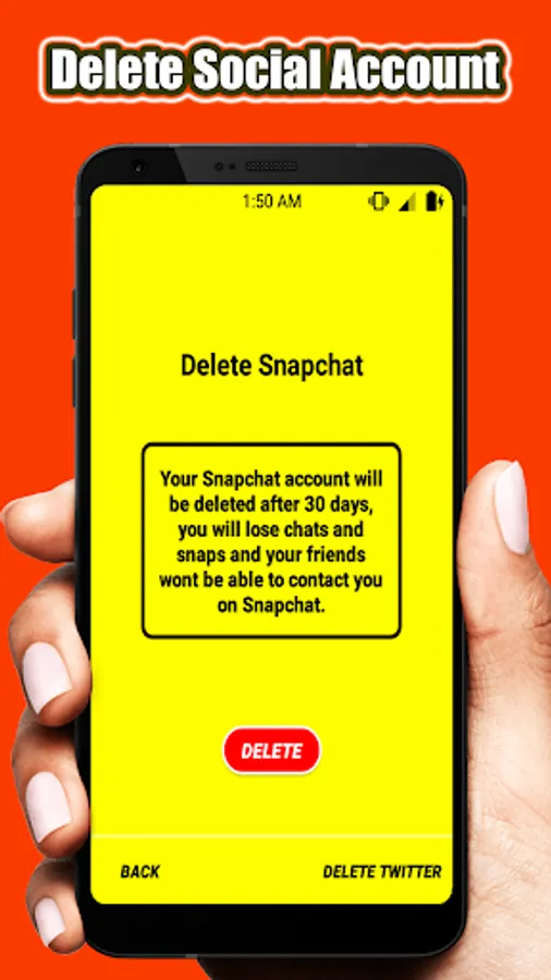 Delete social account give you the easy way to delete your account permanently by giving you direct links to delete snapchat account or other social networks accounts.