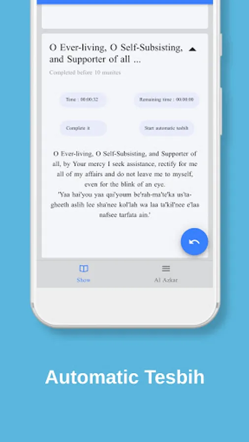 ● Do tesbih with different methods: Tesbih by touching the screen, by pressing the headset buttons or by using automatic tesbih feature.