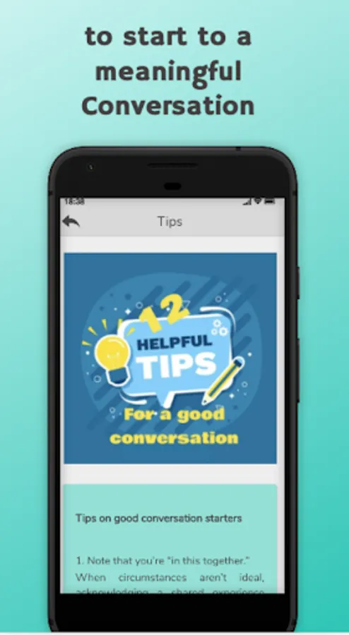 Conversation Starter Guide gives you the basic guidelines how one can start a meaningful or a light hearted chat with people around you. Always in the stuck to what to say next or how to proceed a conversation? Then Conversation Starter Guide is the perfect app for you.
