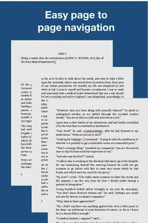 Gear up and bring out your reading glasses with one hand holding this app while you have it Over a cup of coffee as it will Drive your imaginations to a completely astonishing adventure. Let Sherlock and his adventures stretch you Over the limitations of the human behaviour as it Drives you into a world of endless possibilities.