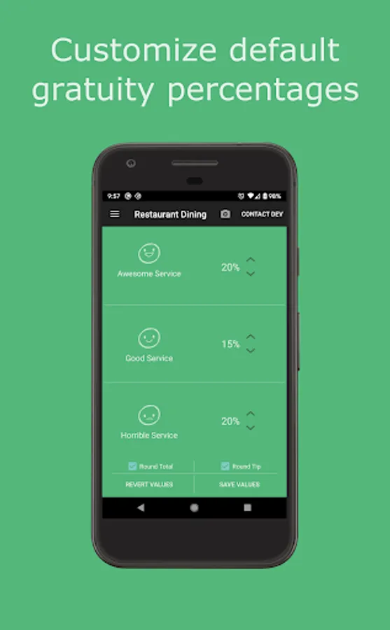 • You will require categorizing the service between awesome, good, and poor…and rest calculation will be taken care by Gratuity, the tip calculator.