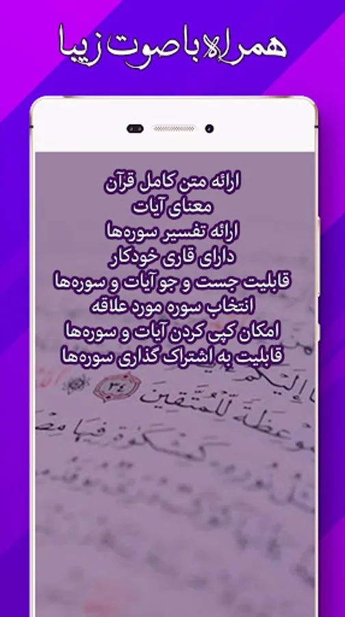 Install the Holy Quran with Persian translation. The complete Holy Quran has been created for you. The complete Holy Quran without Internet is designed with the voices of different reciters. There is a possibility of reciting the Quran in full audio without internet. Holy Quran full audio without internet has a relaxing environment with many settings. It is possible to choose the language in three different ways in the Holy Quran without internet. Recitation in the form of a smart Qur'anic pen by clicking on any Qur'an, see the full audio Quran without the Internet. The complete Holy Quran audio without internet that you are going to download provides you with a low volume of six authentic reciters. This complete audio Holy Quran without internet is completely free. You will not need to pay for the Holy Quran with full audio without internet. The Holy Quran complete audio without internet has the possibility of recitation in the form of surahs as well as verses and parts. Choosing a reciter in the Holy Quran complete audio without internet is done easily and download surahs at high speed. The Holy Quran complete audio application without internet is very useful. You can download the Holy Quran with Persian translation from here. Enjoy the voice of famous reciters with the Holy Quran with Persian translation. The Holy Quran with Persian translation has used the famous script of Usman Taha. The Holy Quran with Persian translation makes reading easier for you. With the Holy Quran with Persian translation, you can use the voice of famous reciters and listen to the voice of Quran reciters by clicking on each verse or use the voice of reciters by clicking on the general playback. Benefit from the reward of recitation with the Holy Quran with Persian translation. Do not miss the program of the Holy Quran with Persian translation. Install the Holy Quran with Persian translation right now.