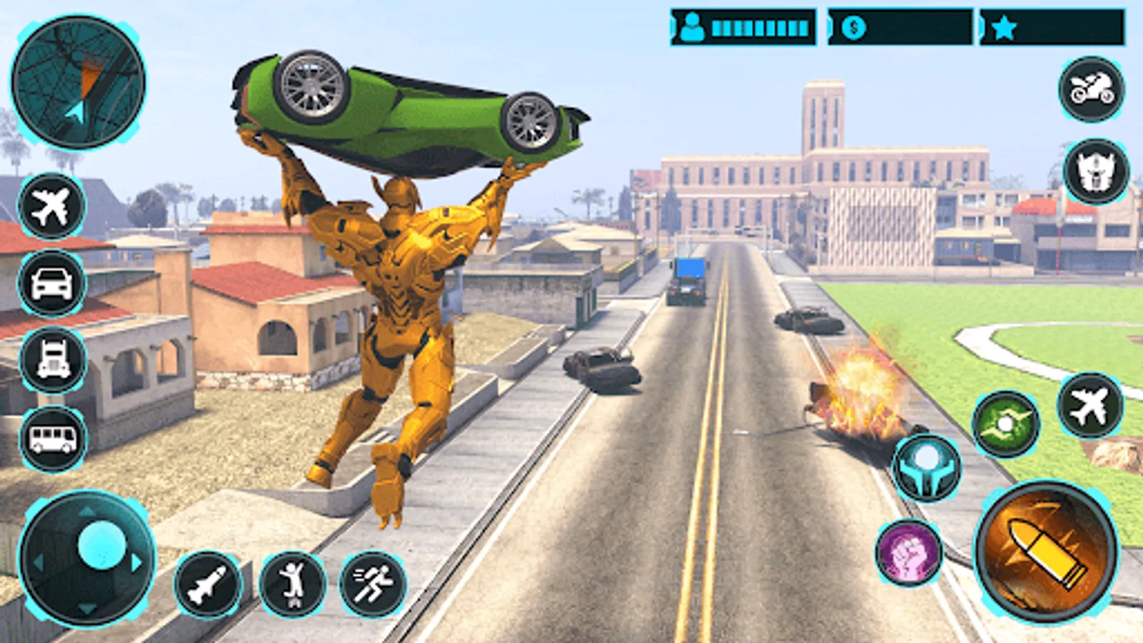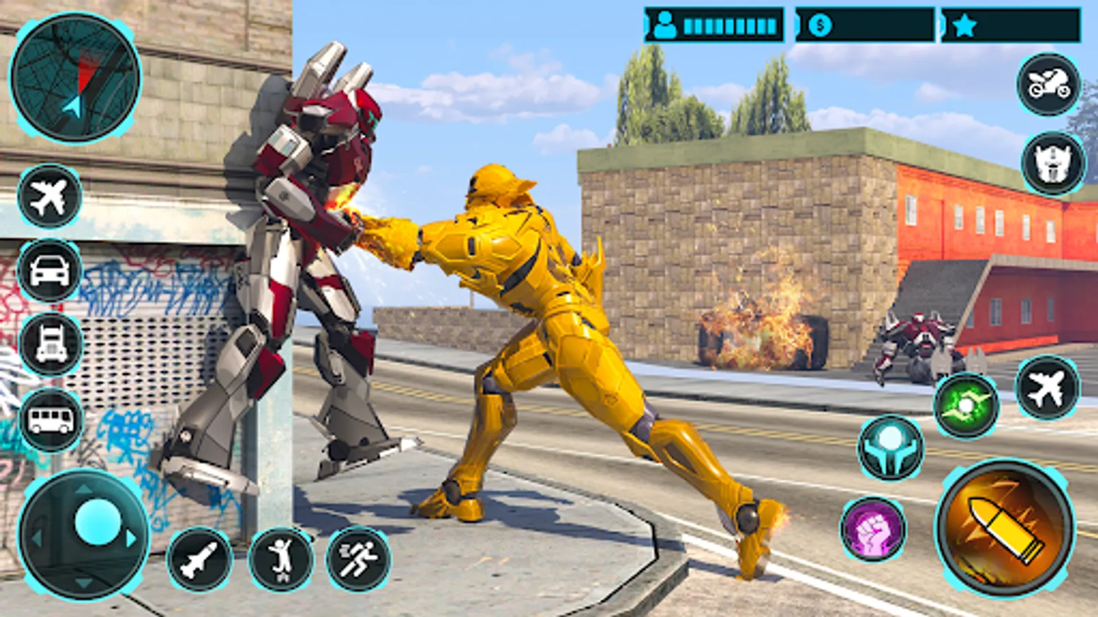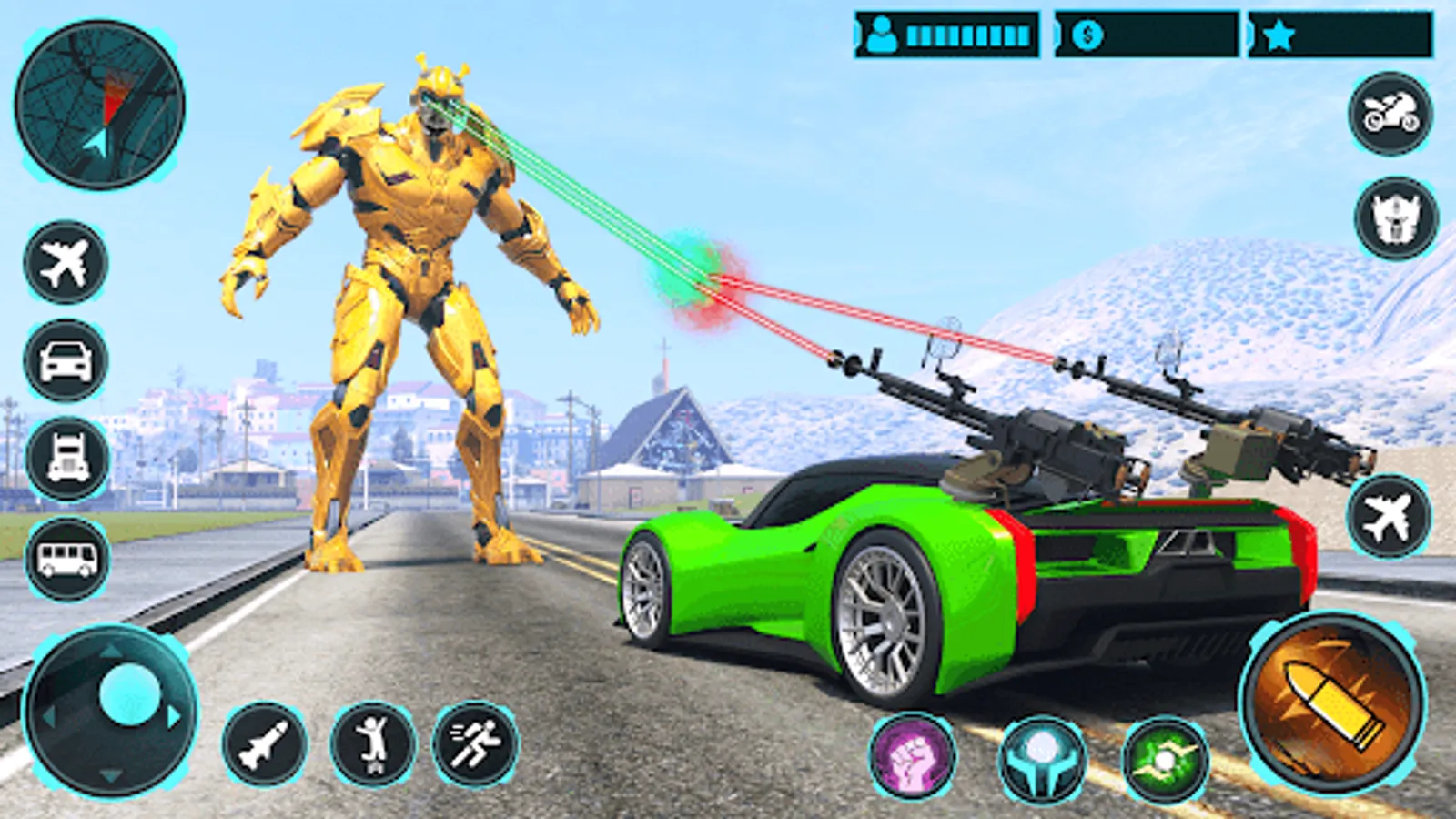 Transforming war with the car robot car game fight epic battle with multi robots transformations in the vice town gangster city with the robot enemies in this robot game. Choose your car transform battle for the robot war and enjoy the multi robot transformation challenges and missions in this game.