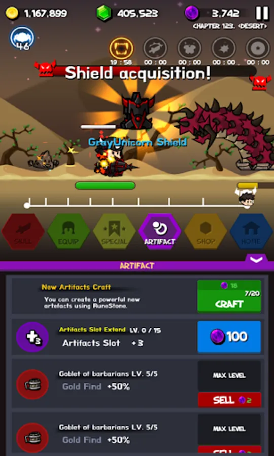 - 11 kinds of artifacts & upgrade
