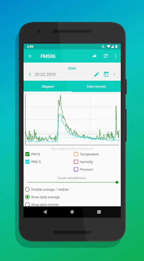 Info: The app isn't able to measure dust with an Android device. We recommend a smog sensor from https://sensor.community/en/.
