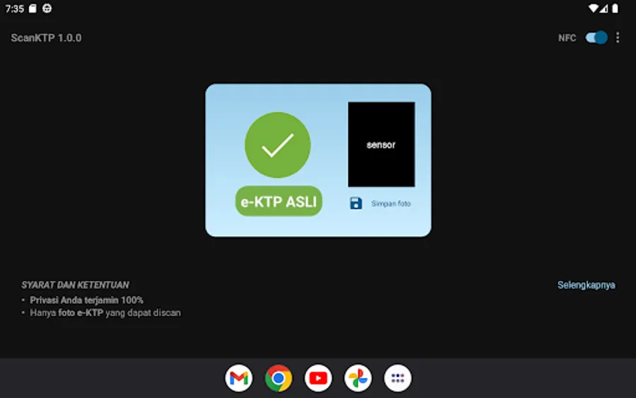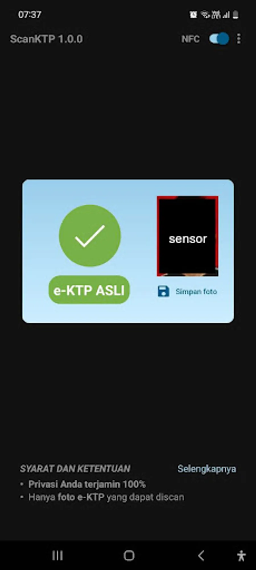 By using the ScanKTP application, you can scan or read the chip on your e-KTP instantly using NFC technology! So that, if the photo data in it is legible, it means that your e-KTP is genuine and contains a chip distributed by the Indonesian Ministry of Home Affairs.